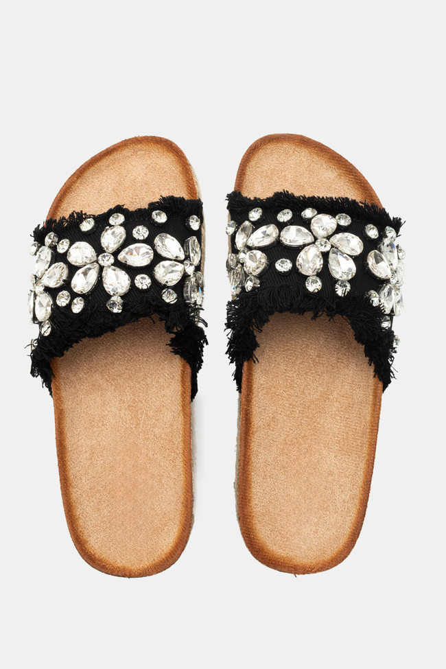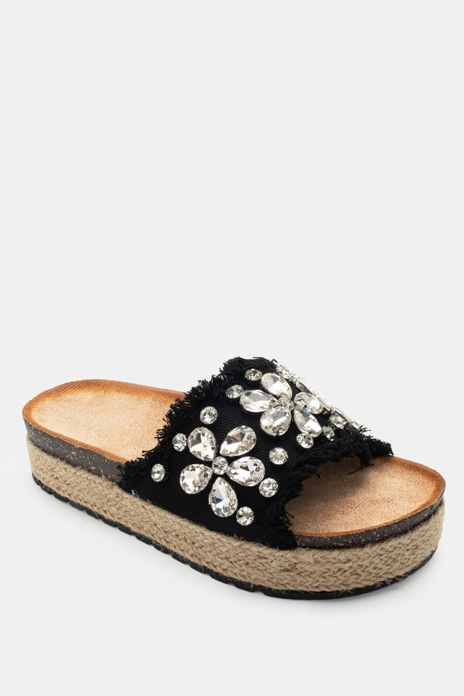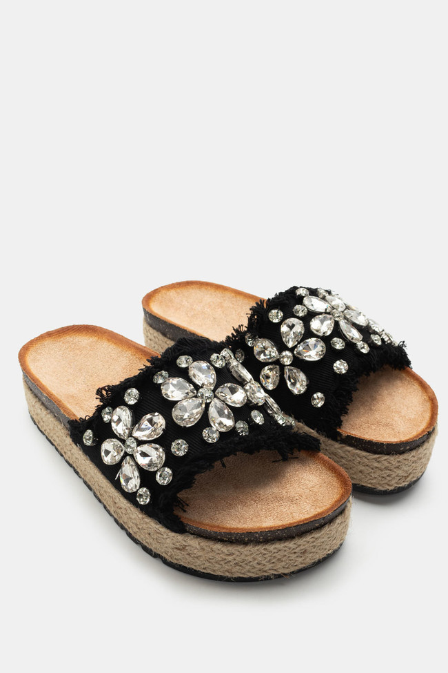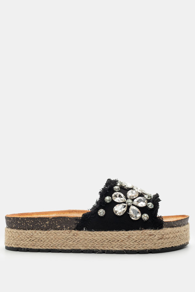 Σανδάλια Flatform Εσπαντρίγες με Διακοσμητικές Πέτρες