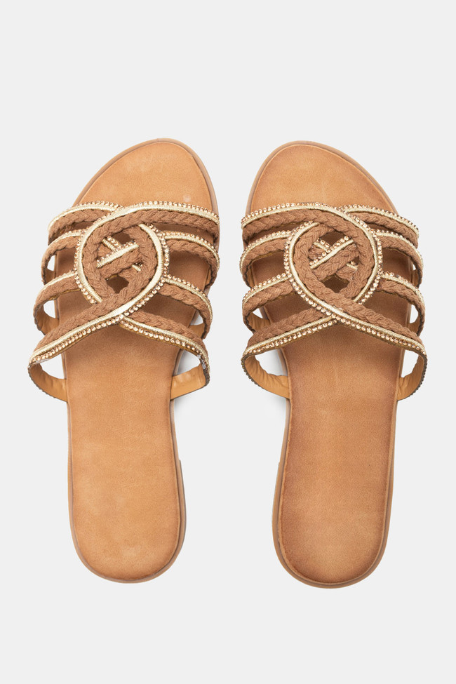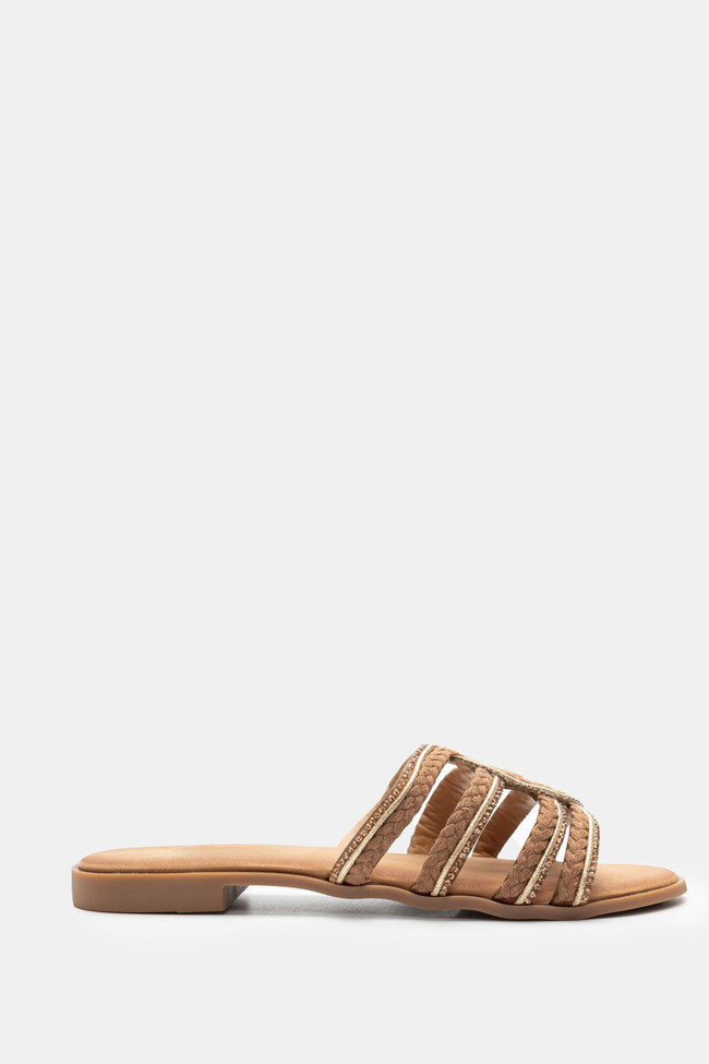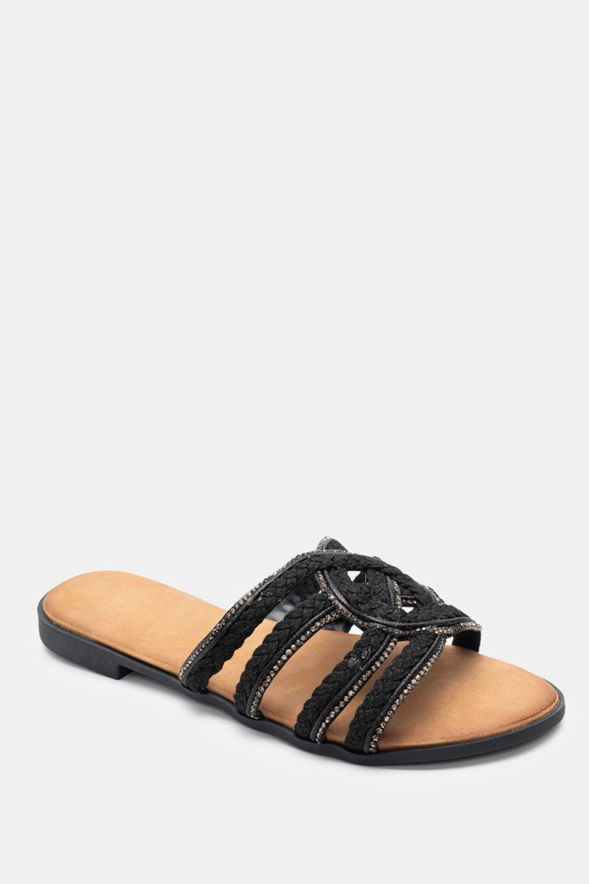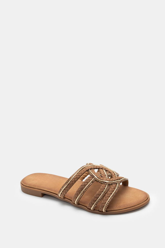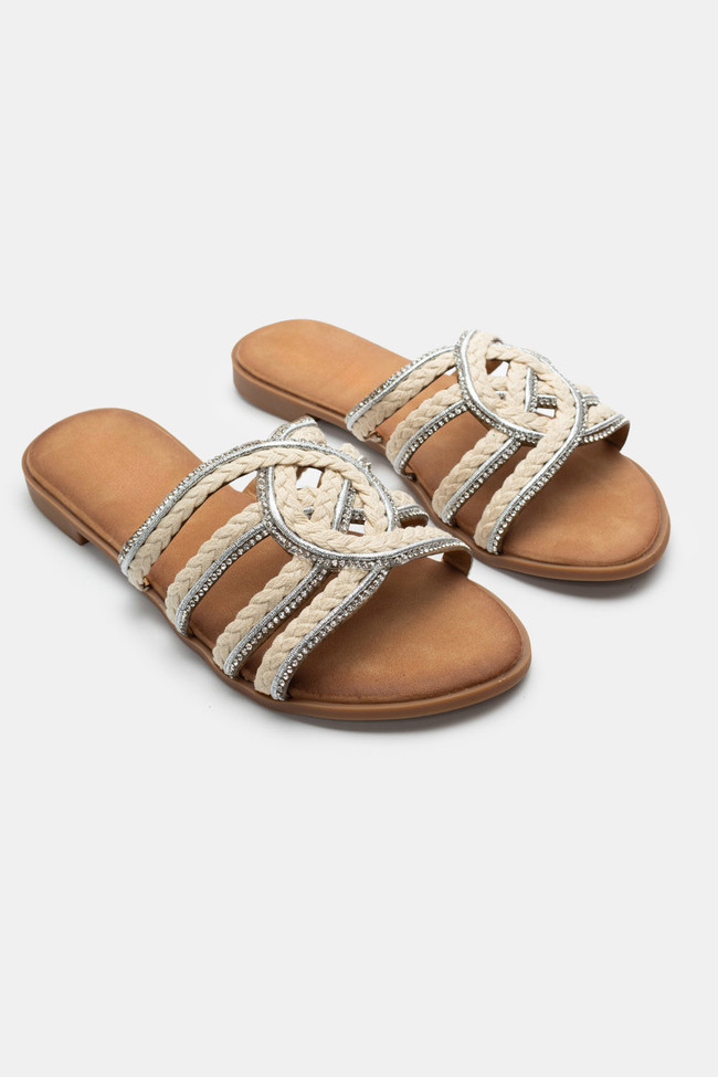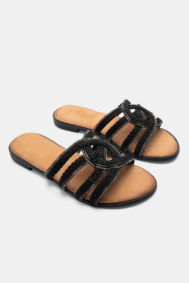 Flat Σανδάλια με Περίτεχνα Λουριά Πλεξούδα & Strass