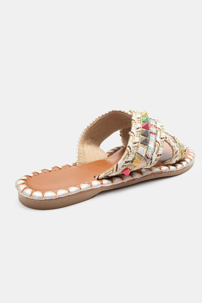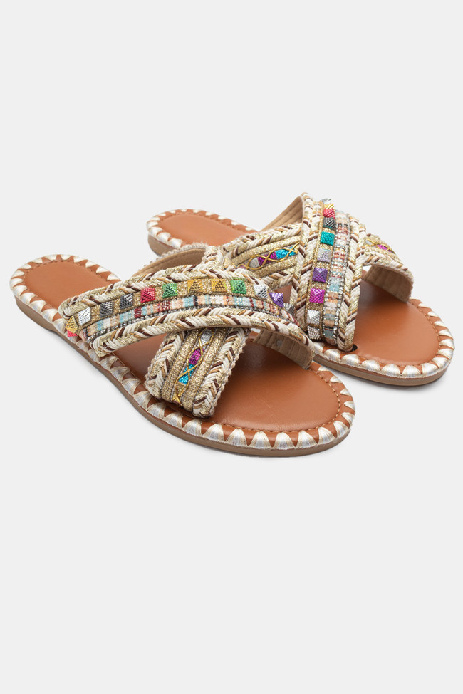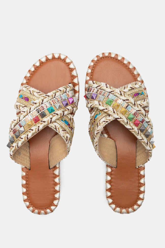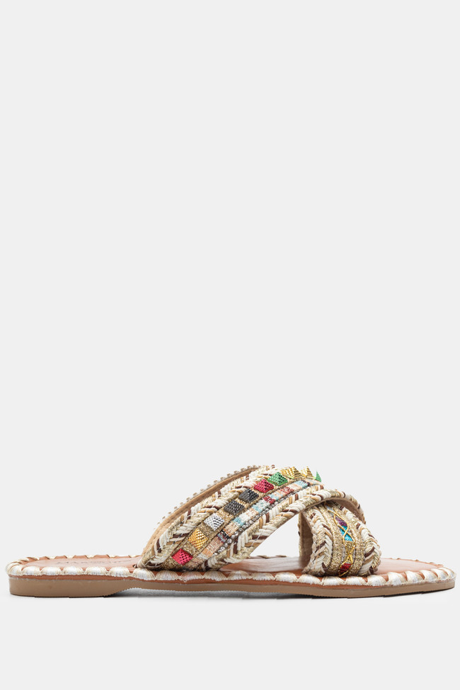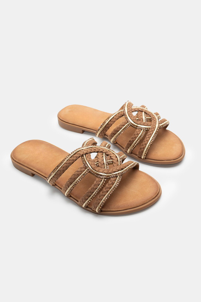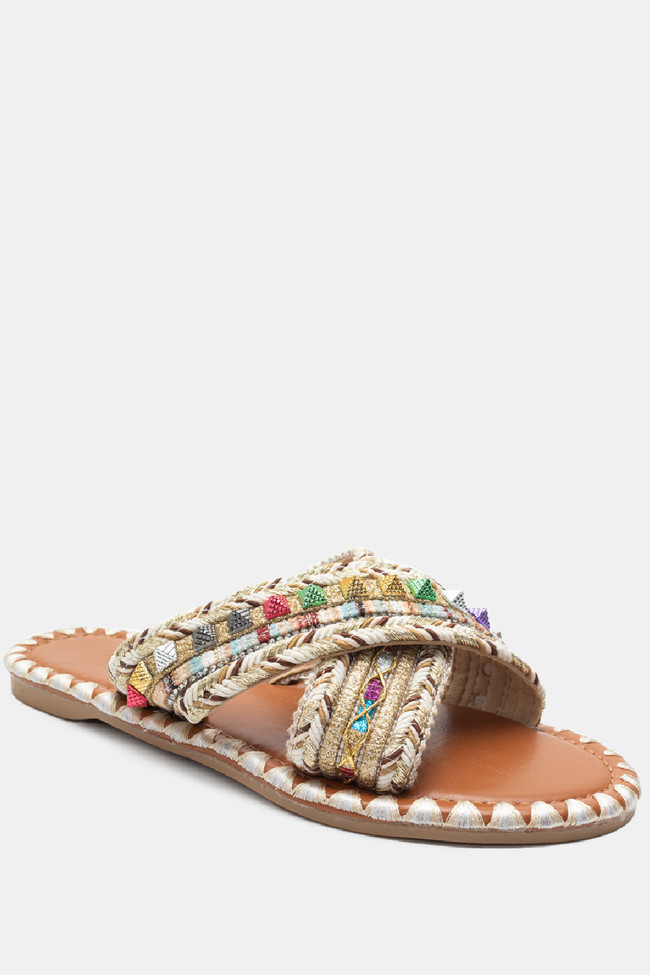 Flat Σανδάλια με Περίτεχνα Λουριά Πλεξούδα & Strass