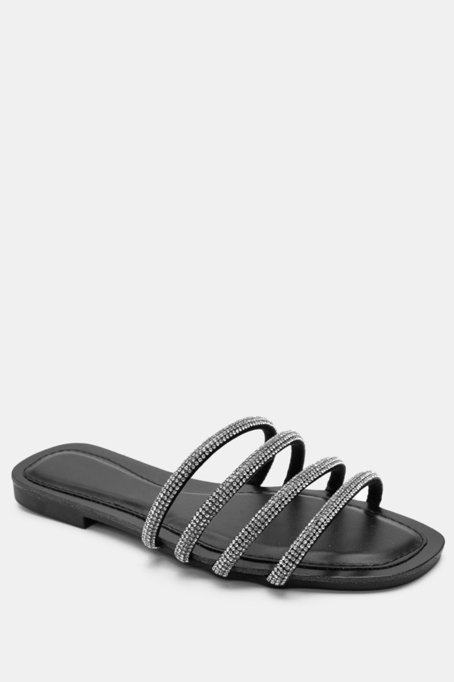 Flat Σανδάλια με Διακοσμητικά Τρουκς & Strass