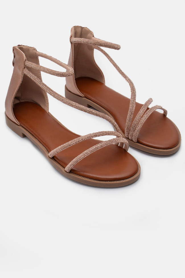 Flat Σανδάλια με Λουράκια απο Strass