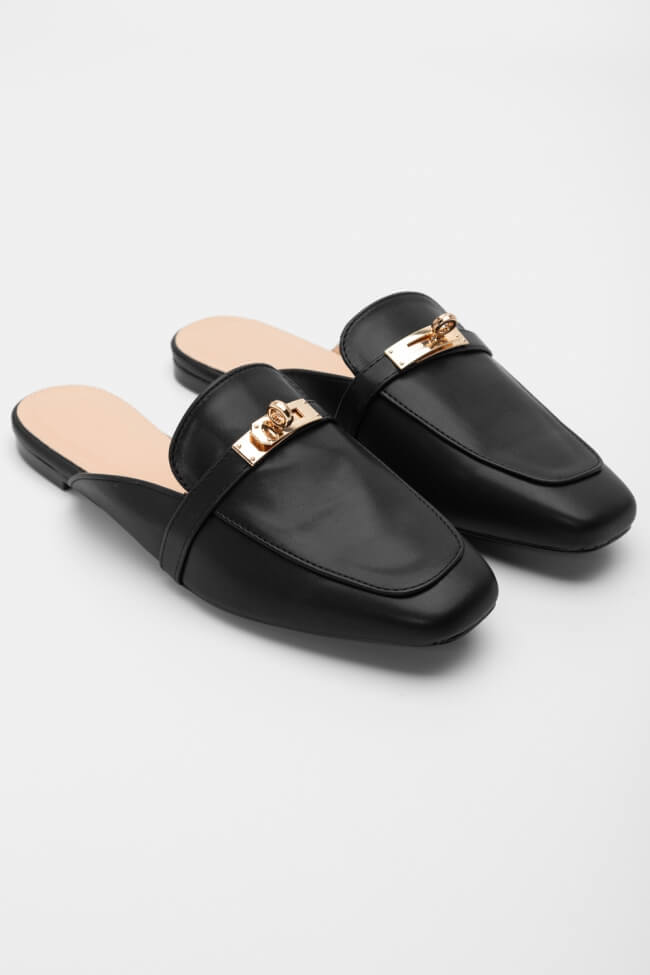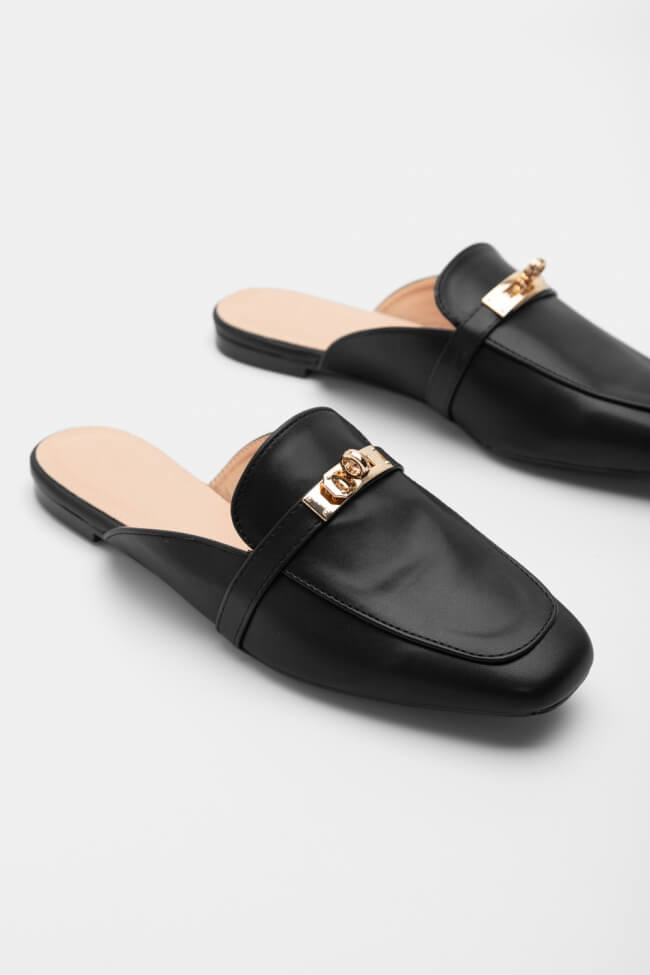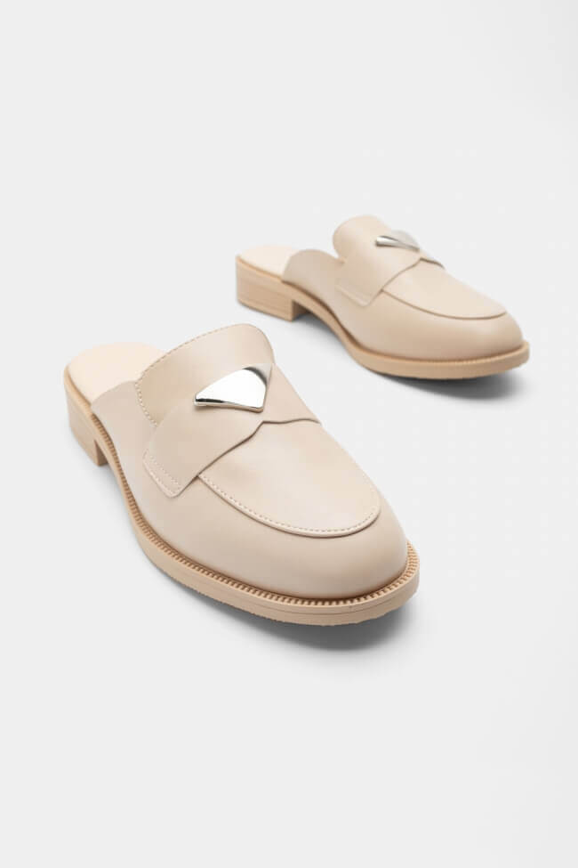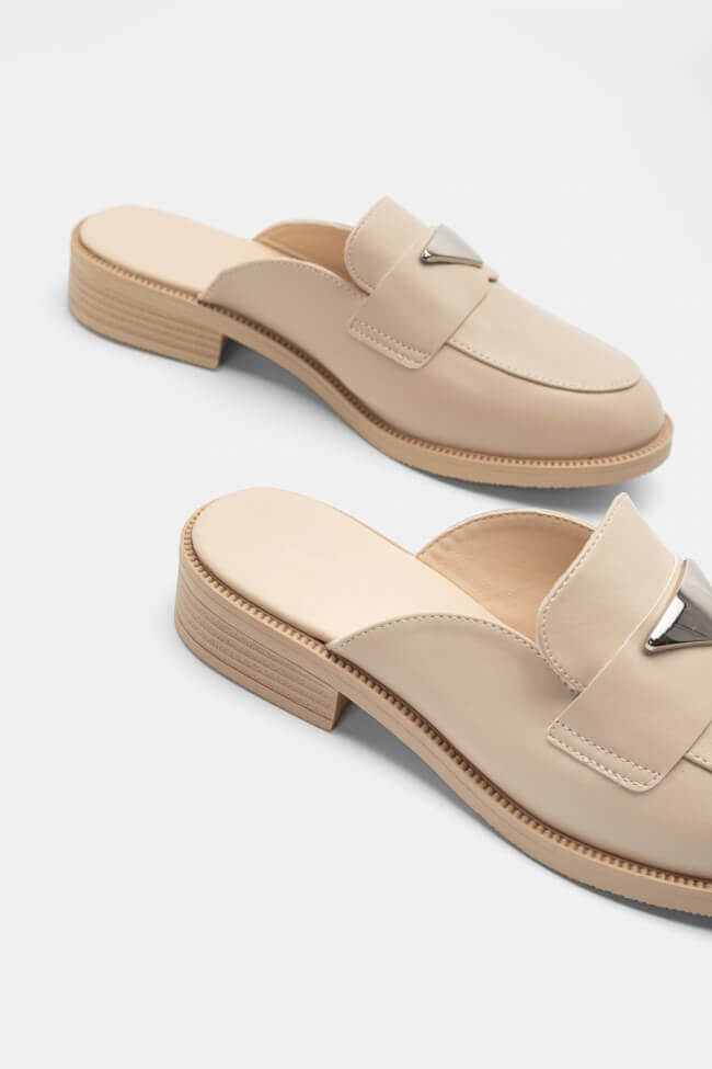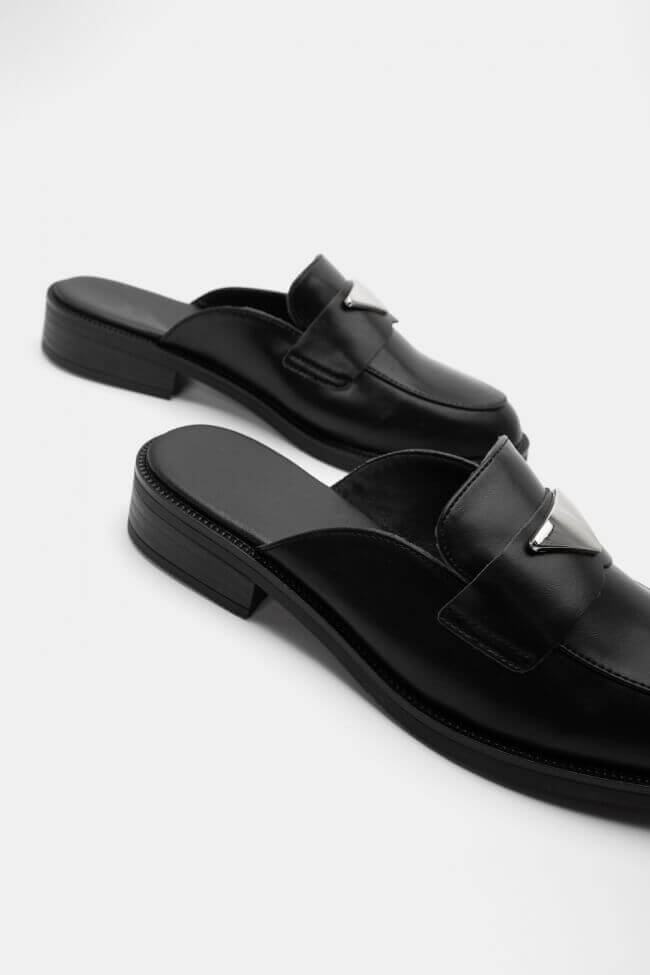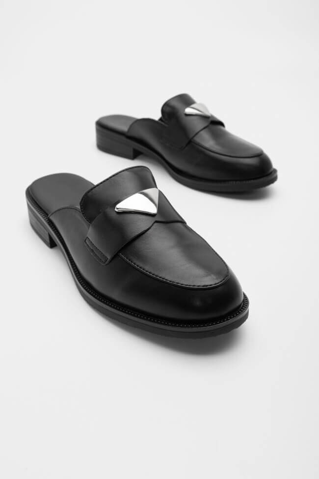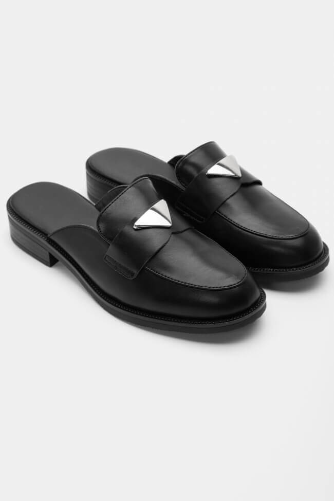 Mules Loafers με Μεταλλικό Διακοσμητικό Τρίγωνο