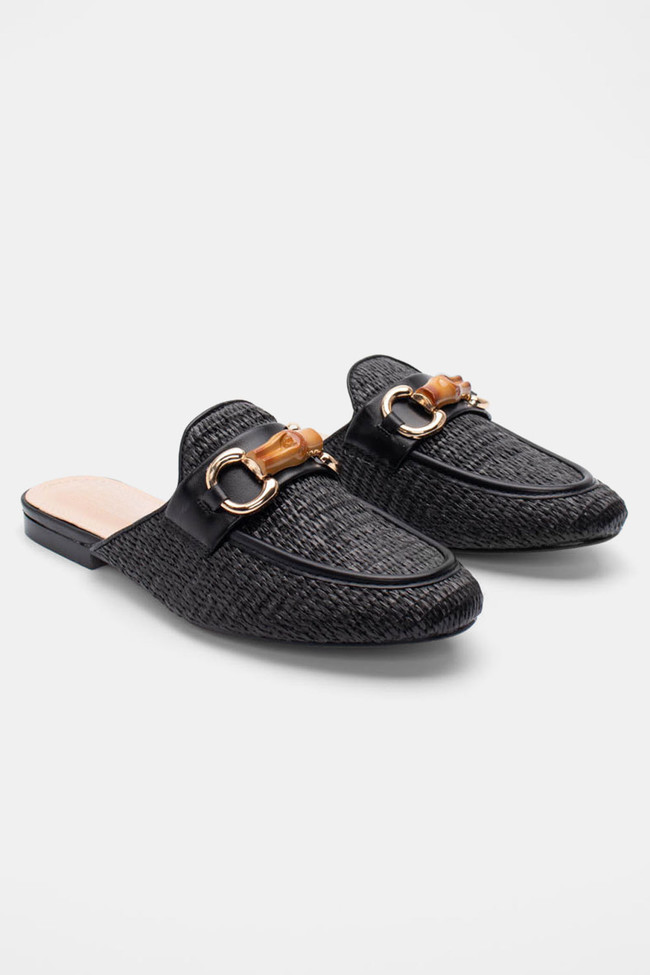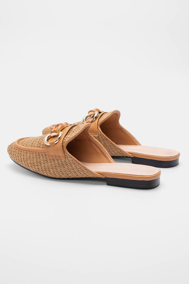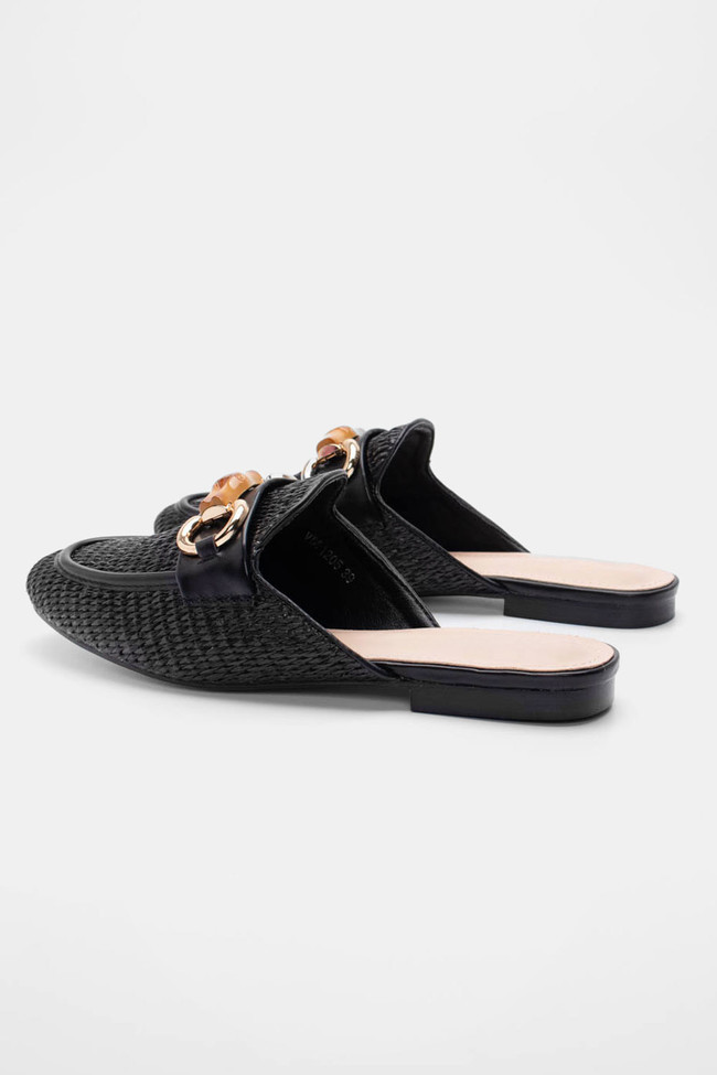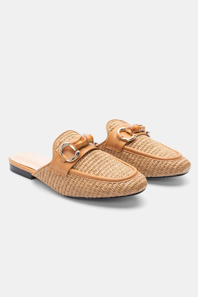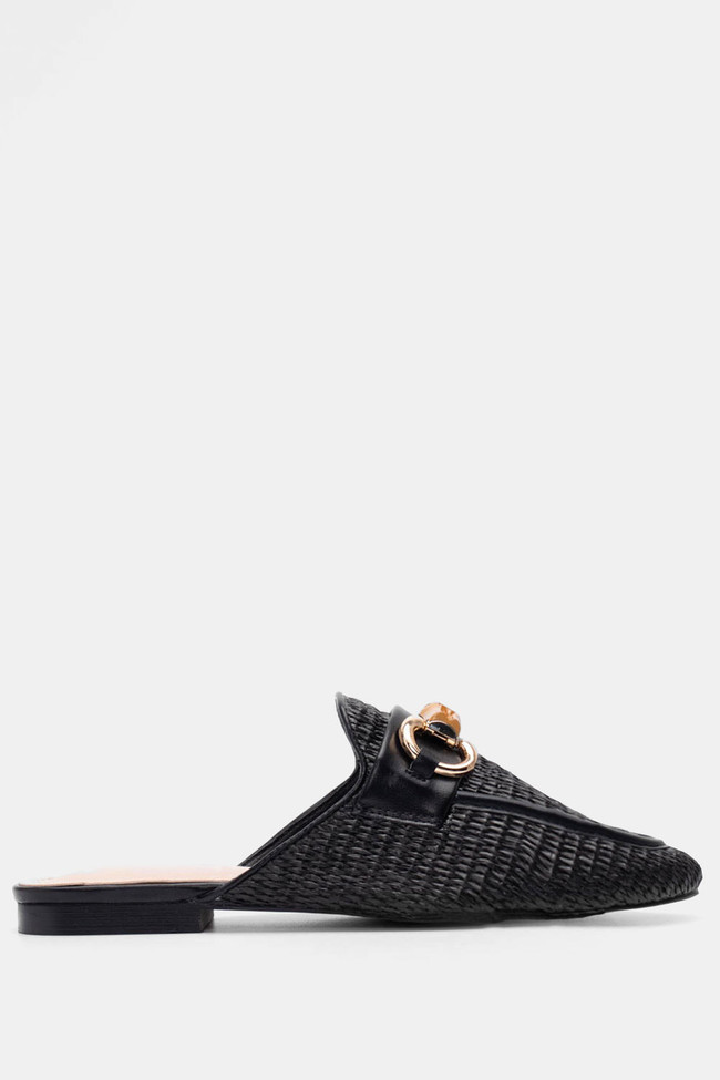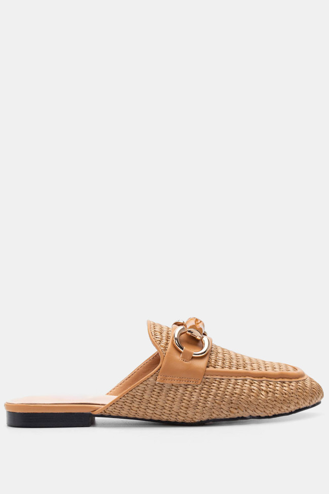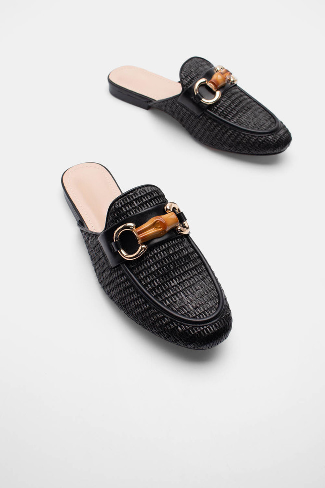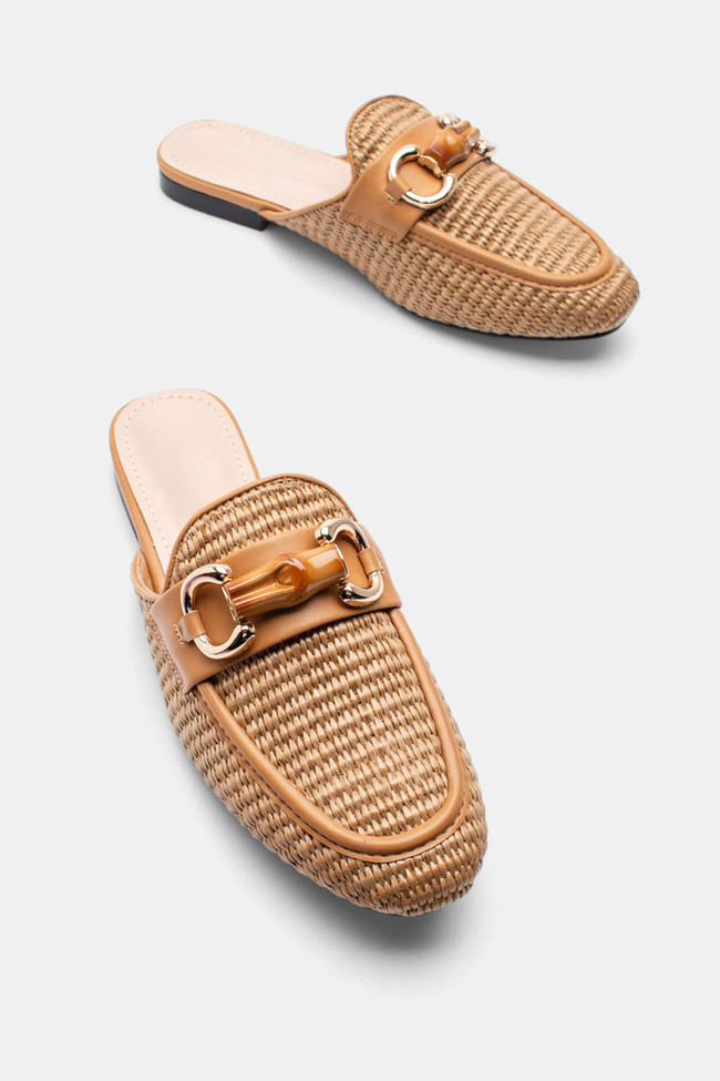 Mules Loafers με Ψάθα & Διακοσμητική Αγκράφα