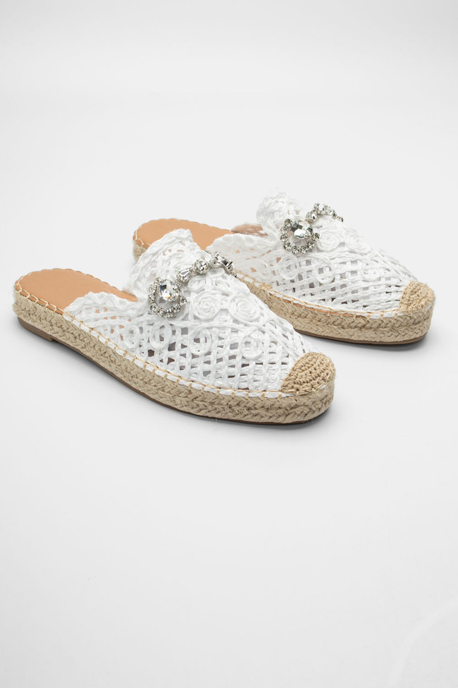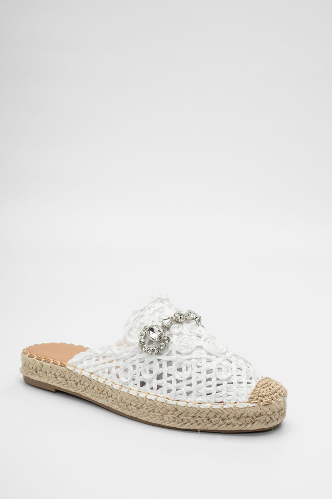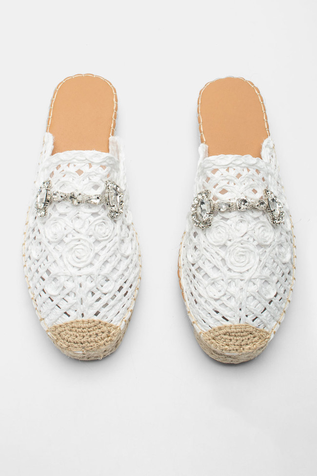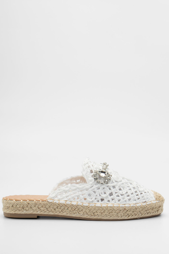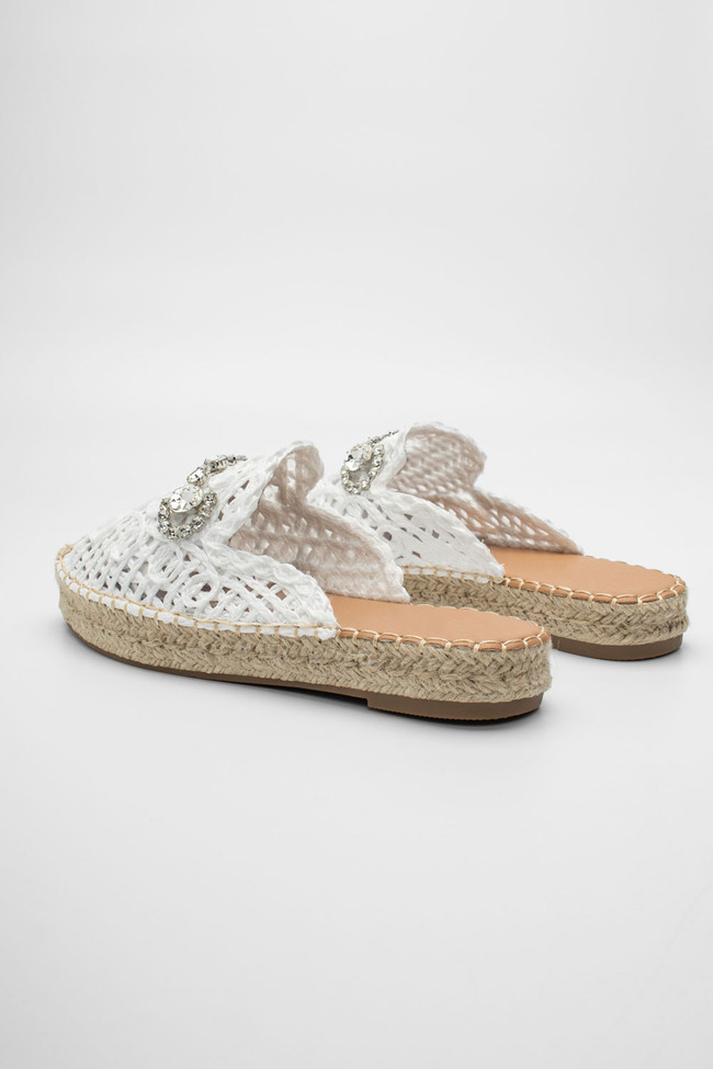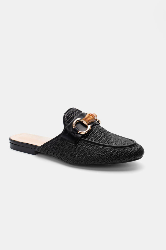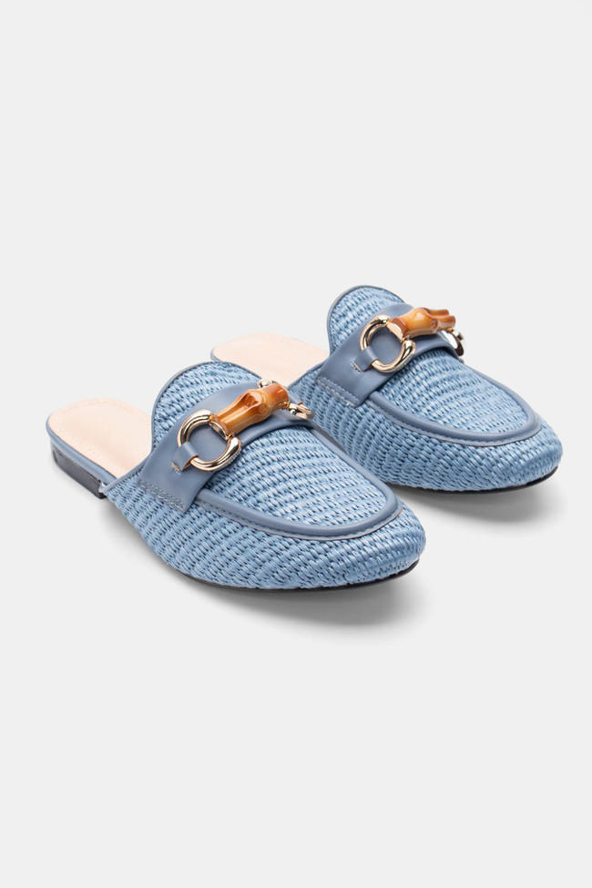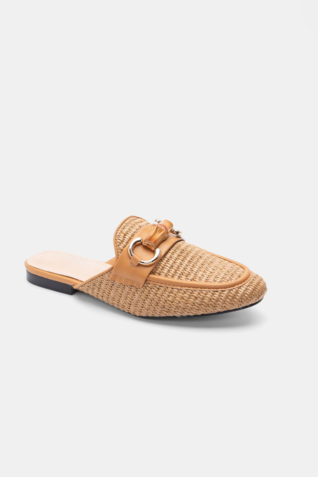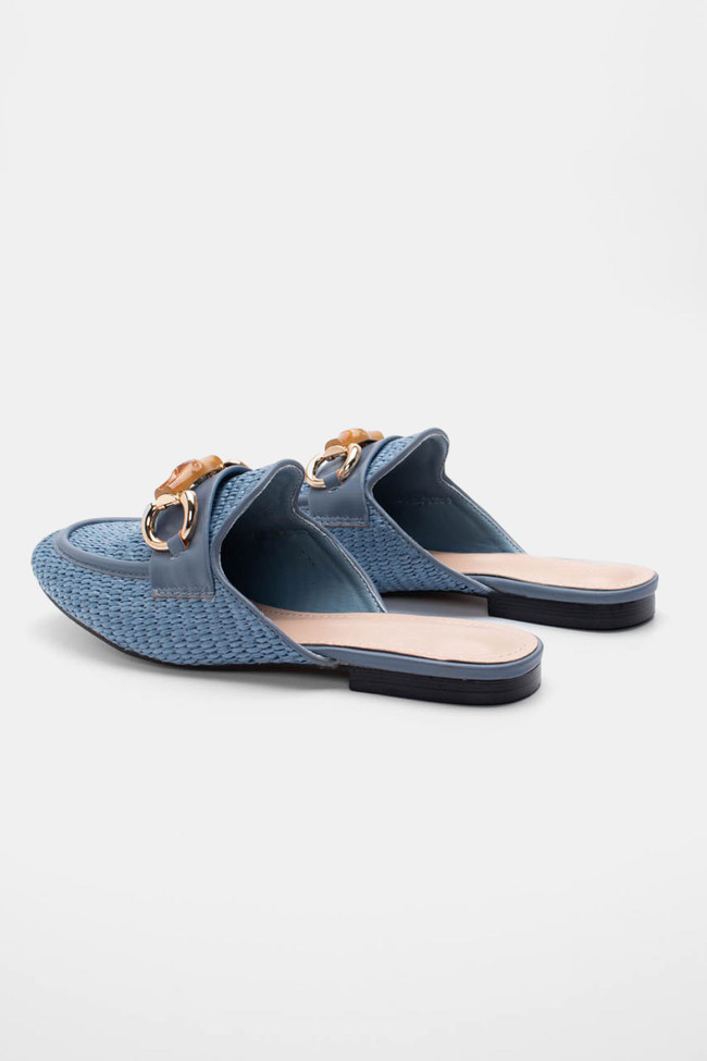 Mules Loafers με Ψάθα & Διακοσμητική Αγκράφα