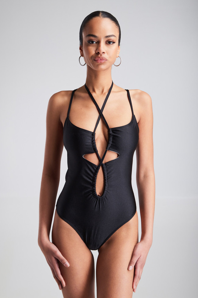 Μαγιό Ολόσωμο Εξώπλατο με Κορδόνια