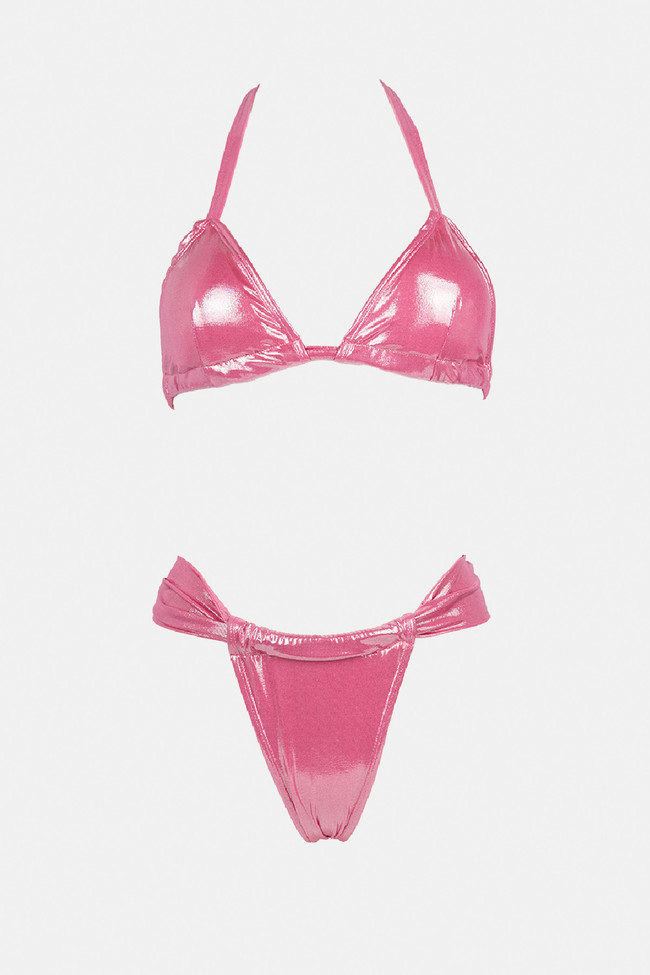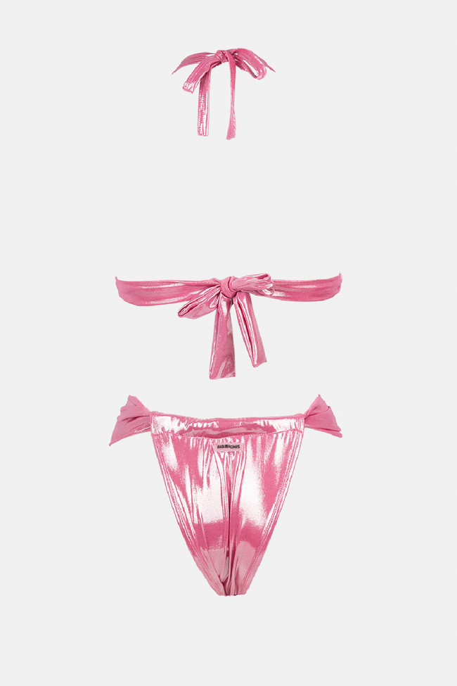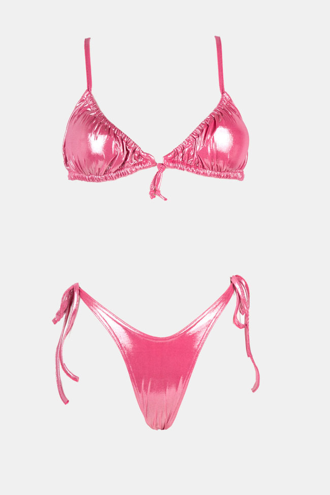 Μαγιό Σετ Μπικίνι Μεταλλιζέ με Κορδο΄νια
