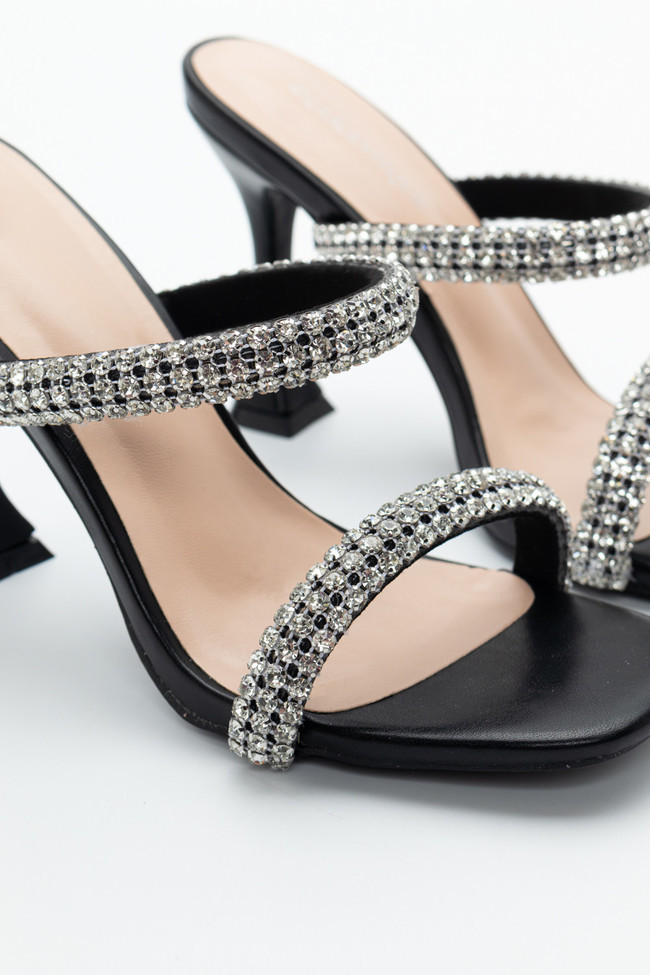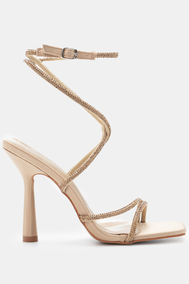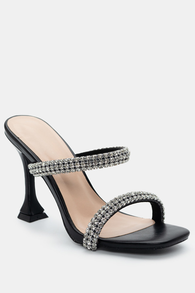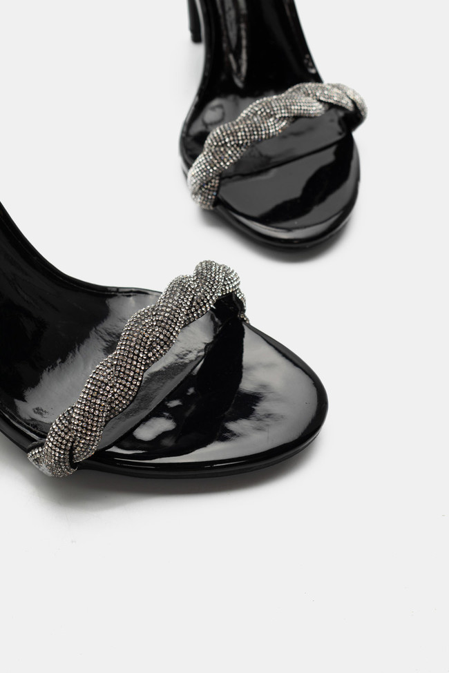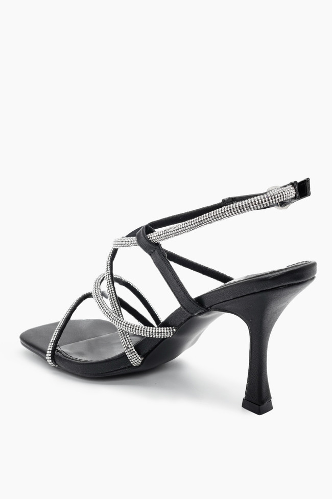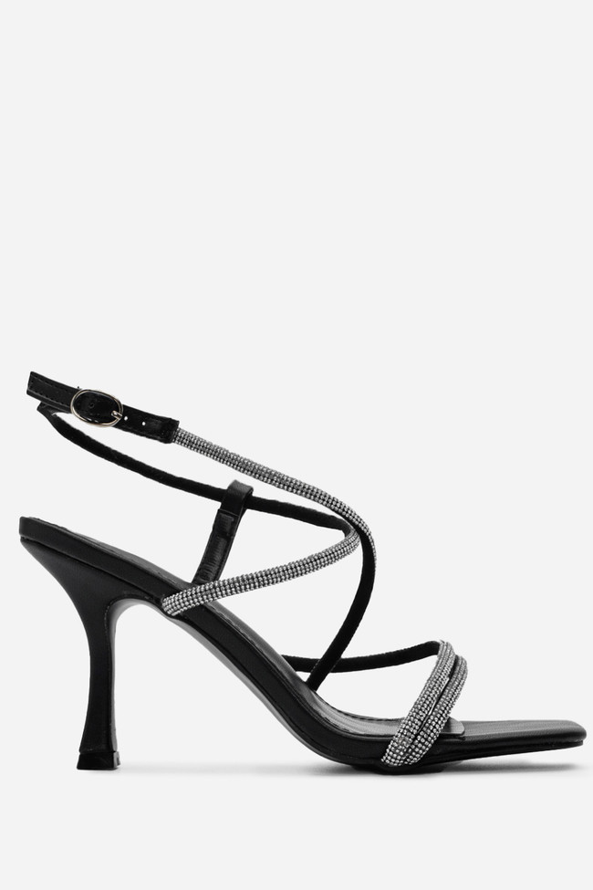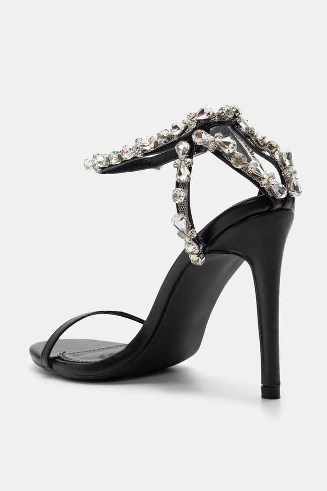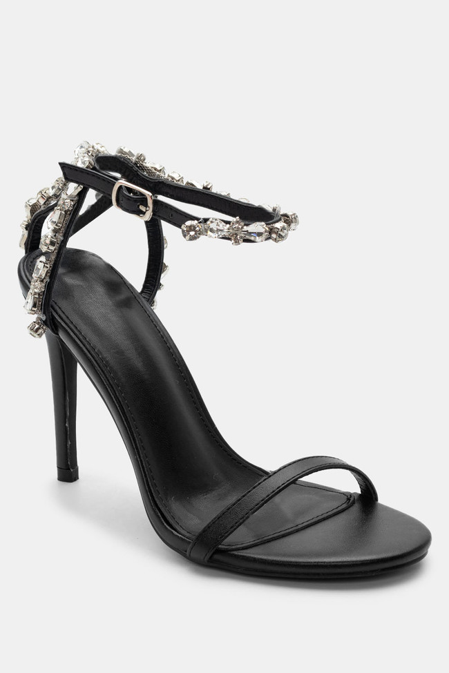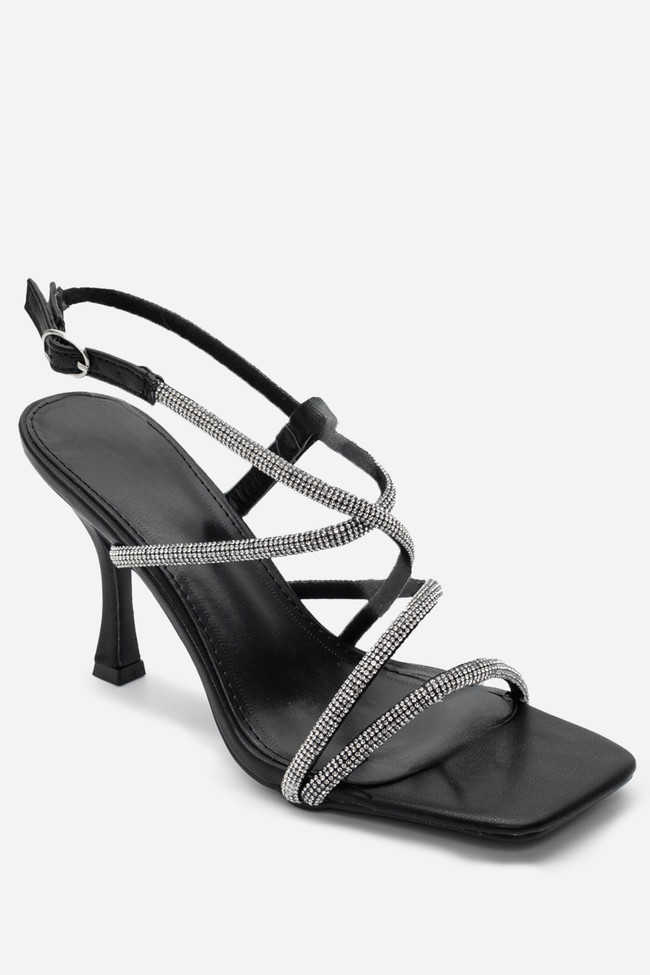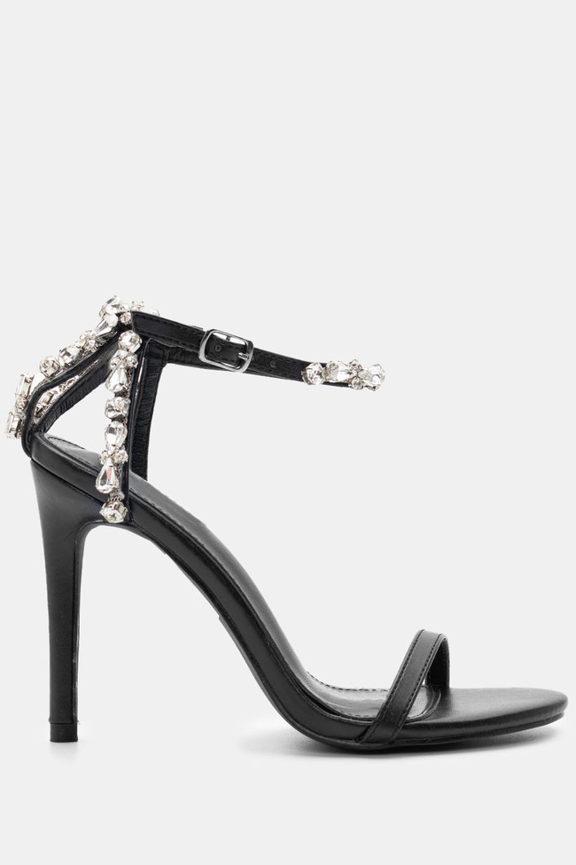 Το λεπτό τακούνι προσδίδει θηλυκότητα και sexy attitude στο σύνολό σου, ενώ τα στρας προσθέτουν μια λαμπερή πινελιά που μαγνητίζει τα βλέμματα.