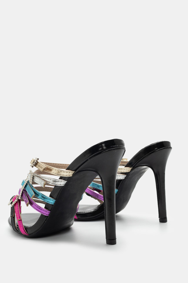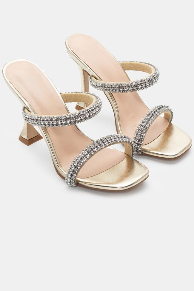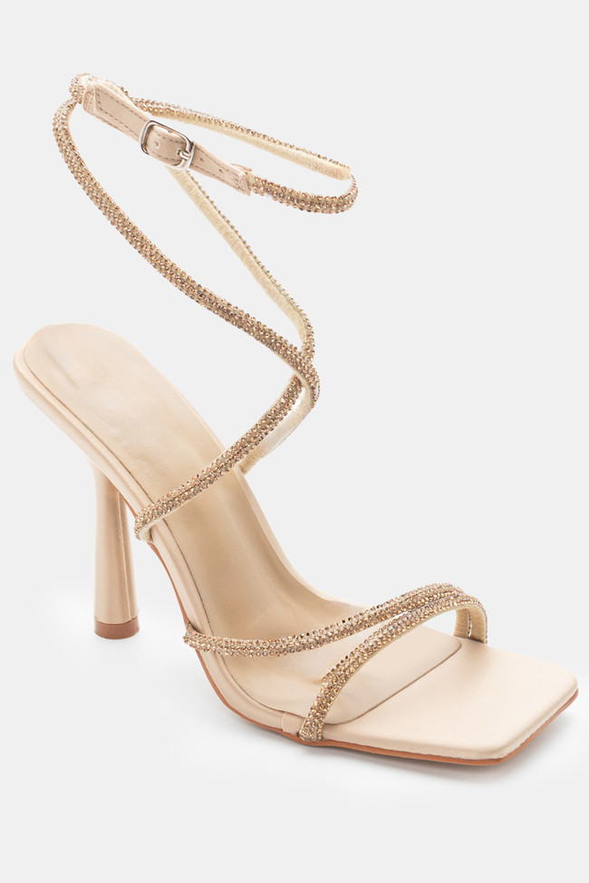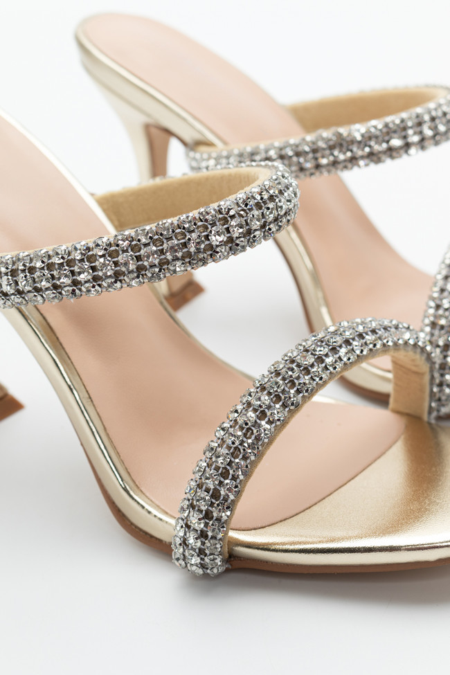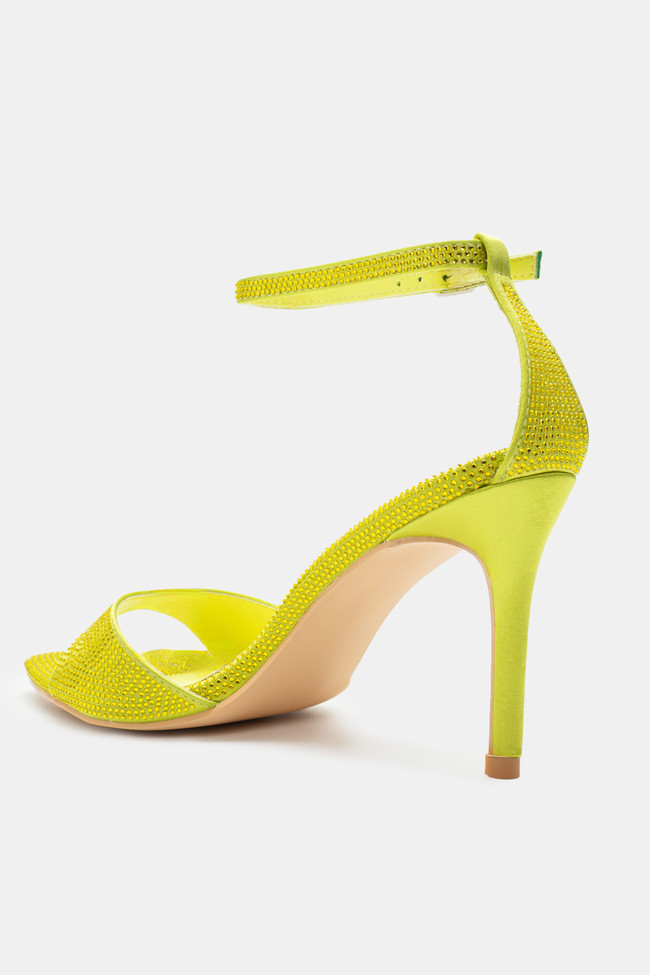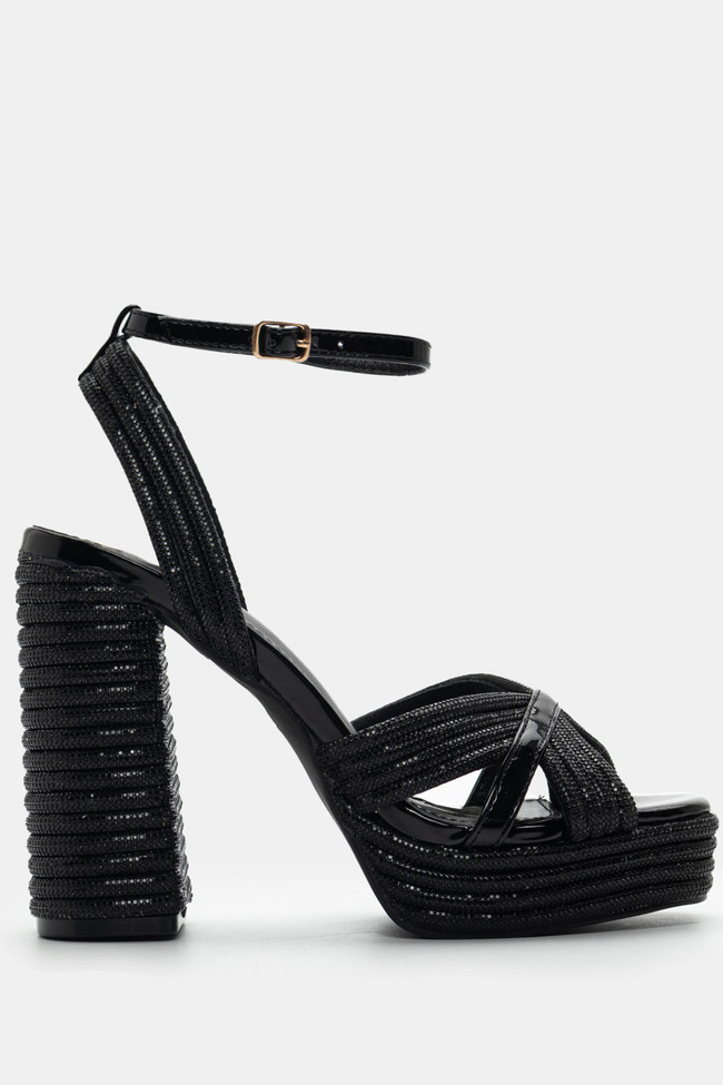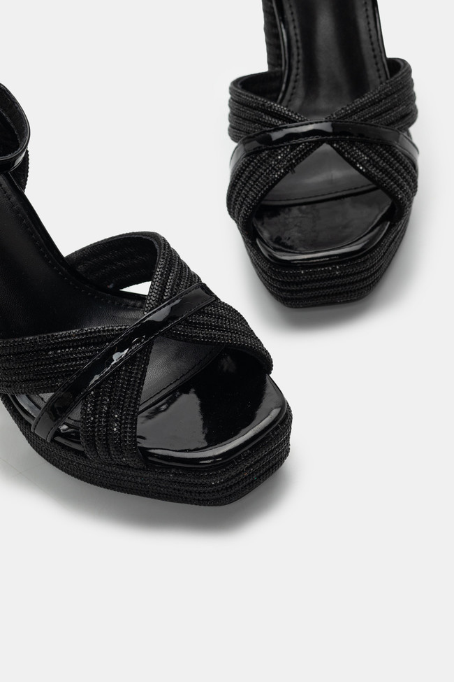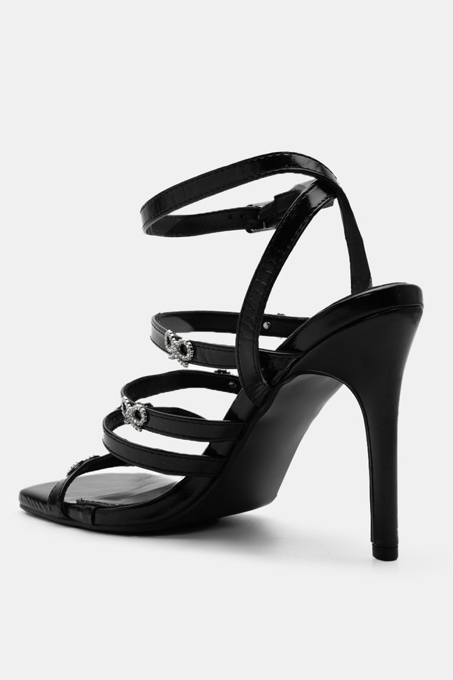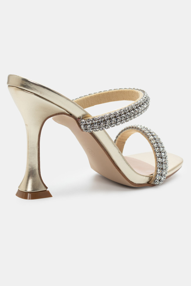 Το λεπτό τακούνι προσδίδει θηλυκότητα και sexy attitude στο σύνολό σου, ενώ τα στρας προσθέτουν μια λαμπερή πινελιά που μαγνητίζει τα βλέμματα.