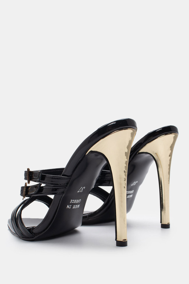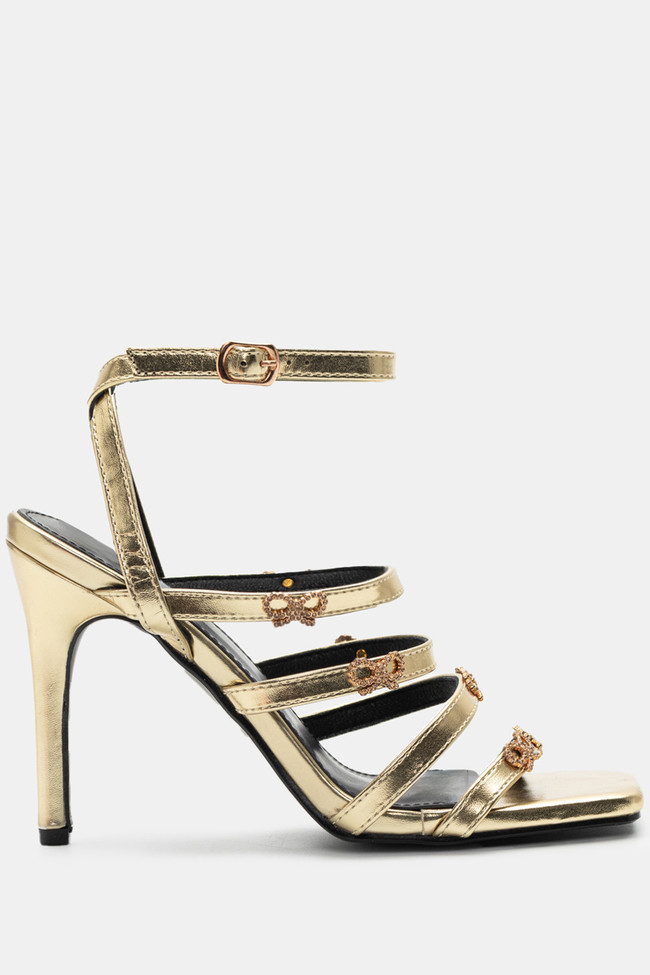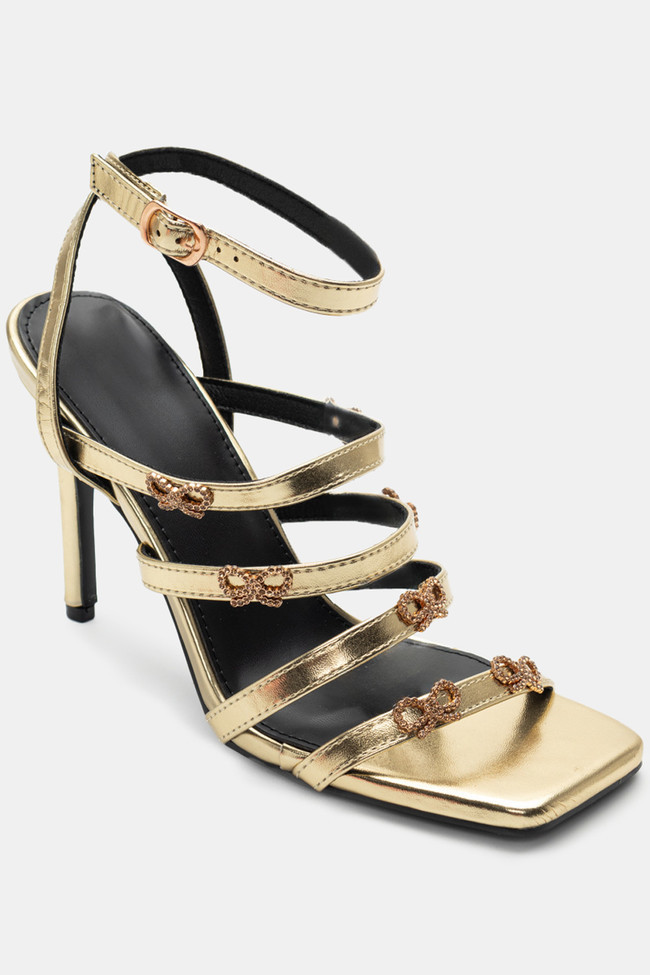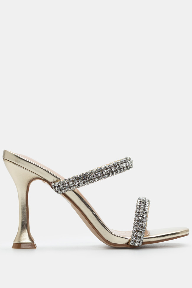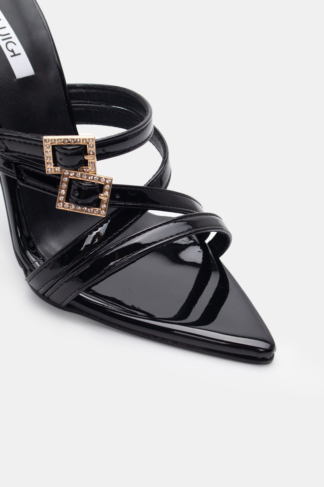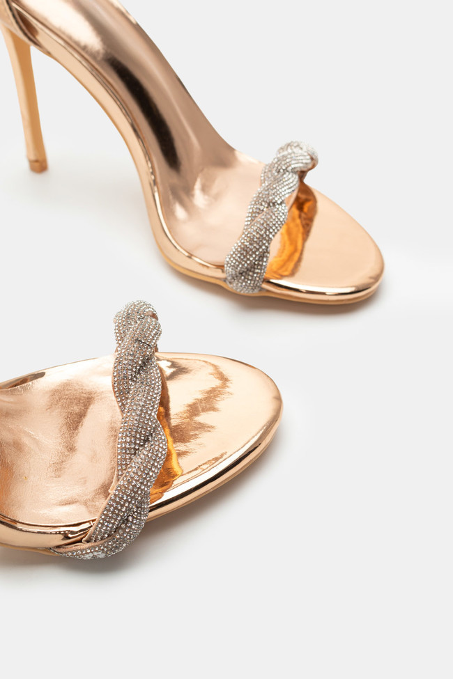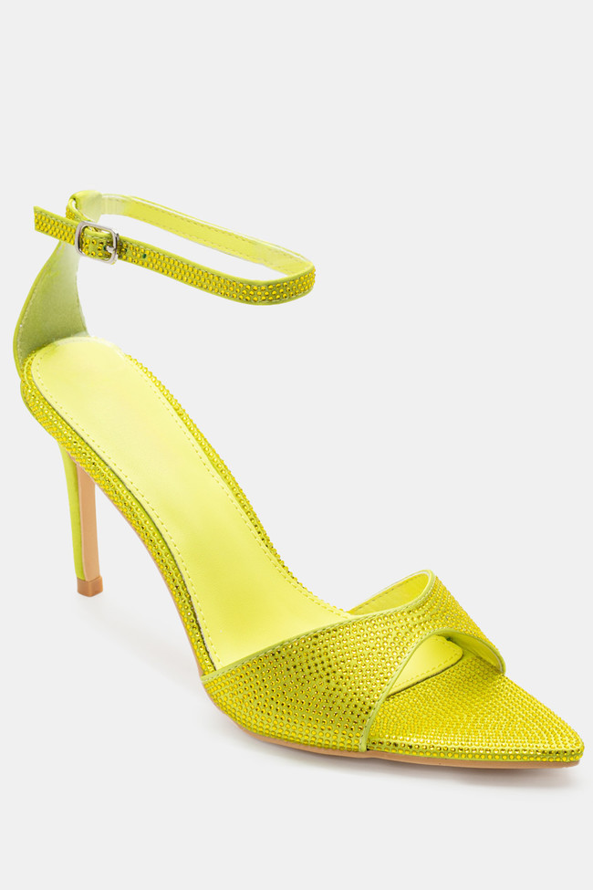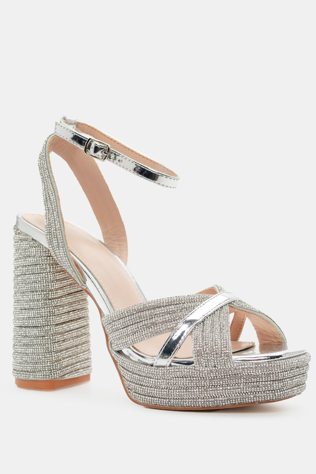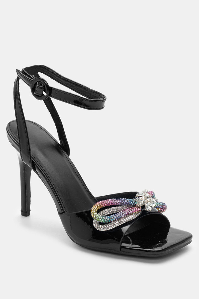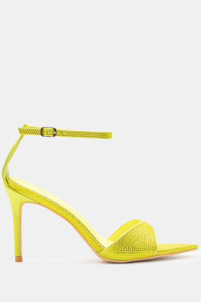 Το λεπτό τακούνι προσδίδει θηλυκότητα και sexy attitude στο σύνολό σου, ενώ τα στρας προσθέτουν μια λαμπερή πινελιά που μαγνητίζει τα βλέμματα.