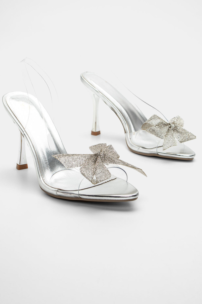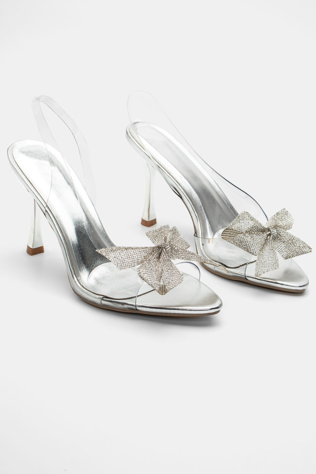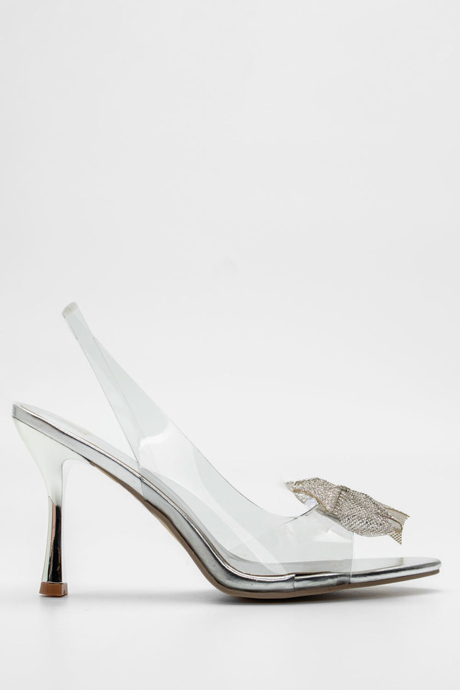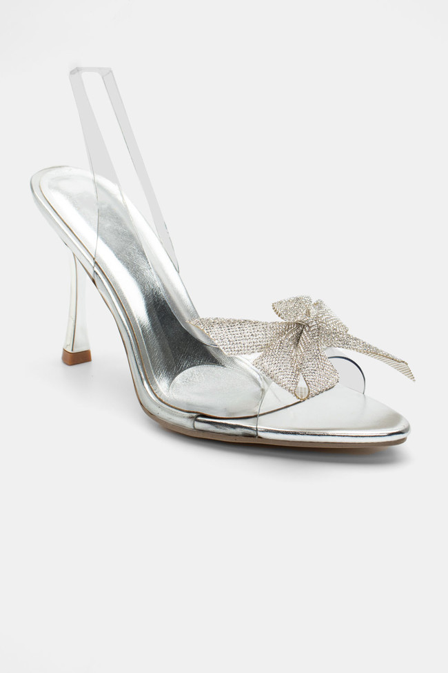Γόβες Open Heel με Διαφάνεια & Διακοσμητικό Φιόγκο απο Strass