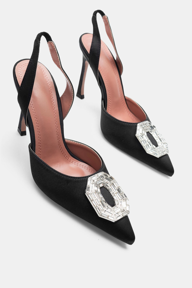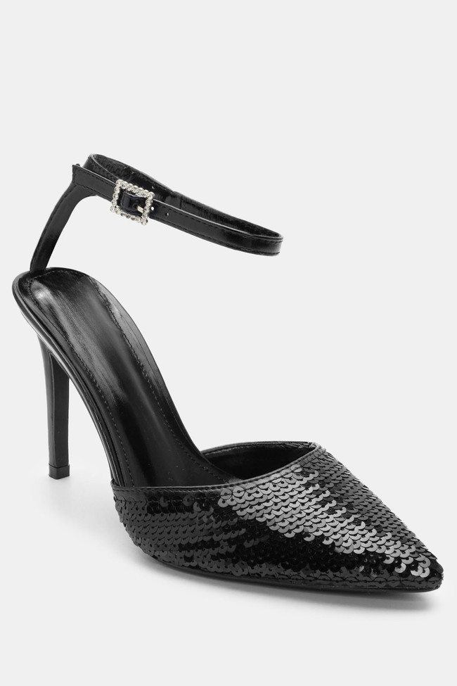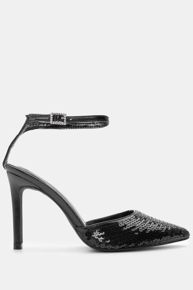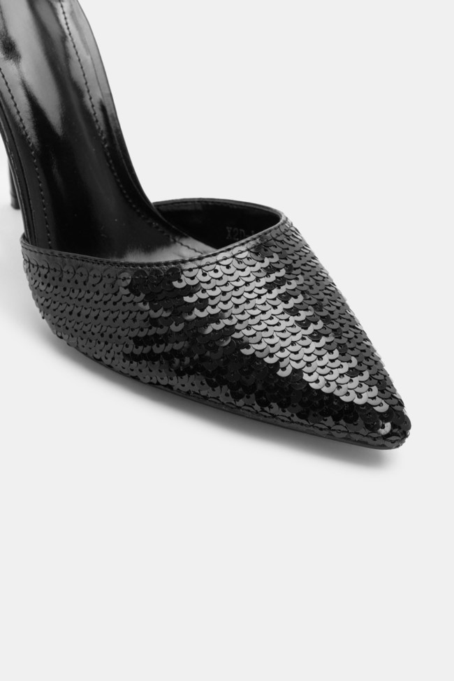 Γόβες Μυτερές Open Heel με Παγιέτες & Strass