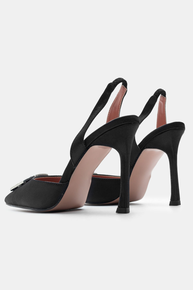 Γόβες Μυτερές Σατέν με Διακοσμητική Τόκα & Λάστιχο