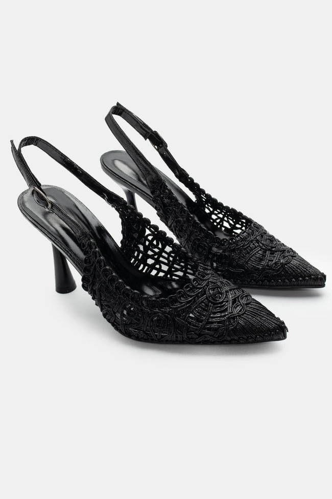Γόβες Μυτερές με Δίχτυ & Διακοσμητική Τόκα
