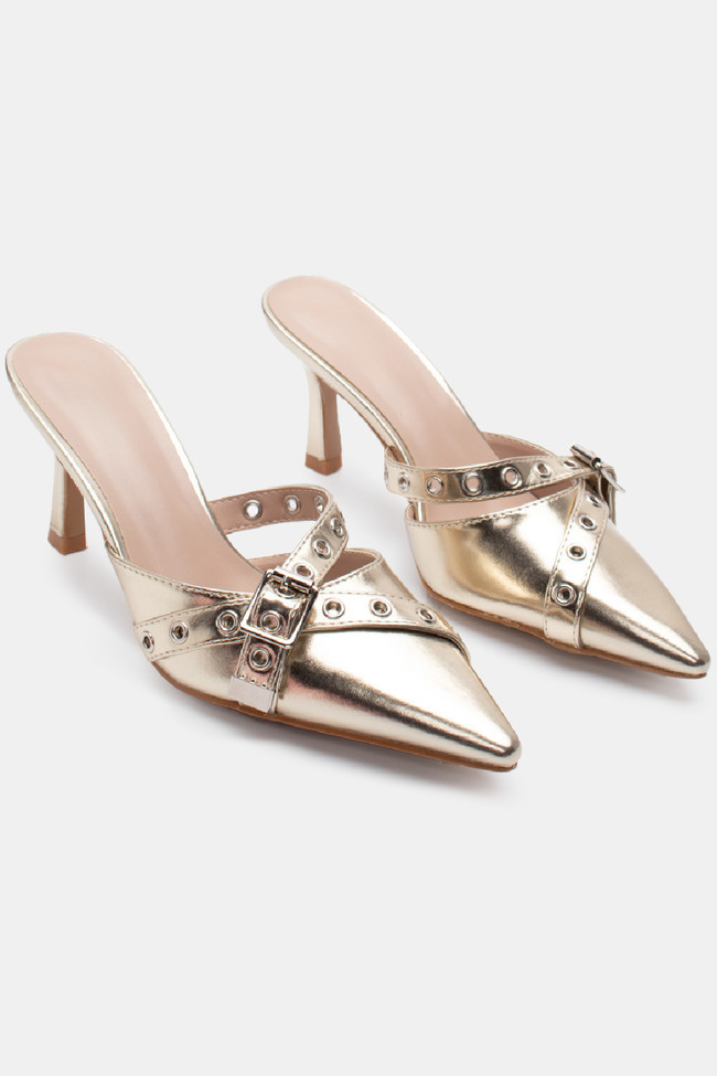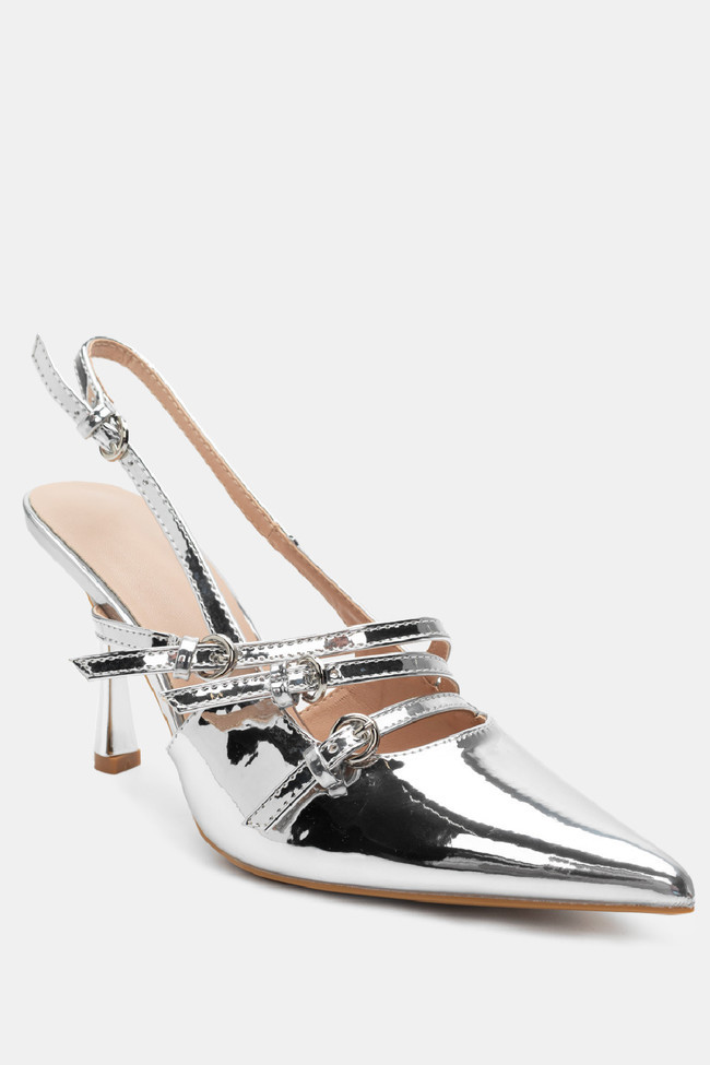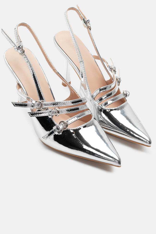 Γόβες Μυτερές Open Heel με Πολλαπλά Λουράκια