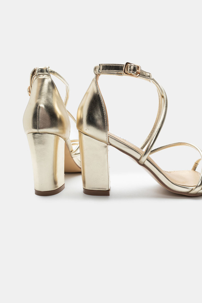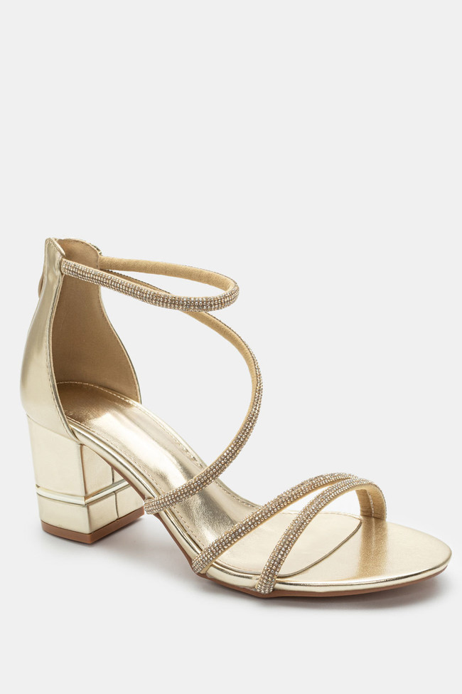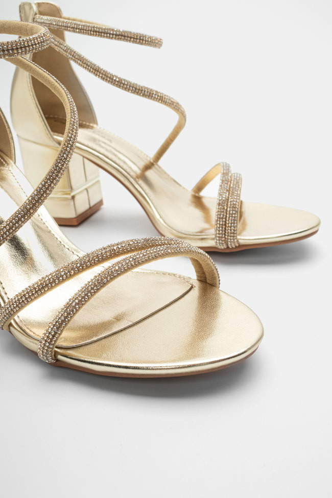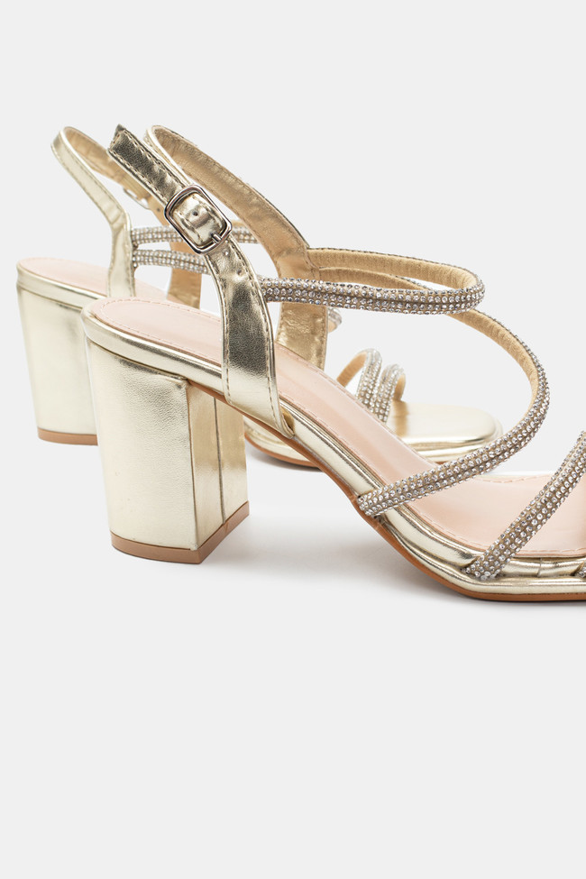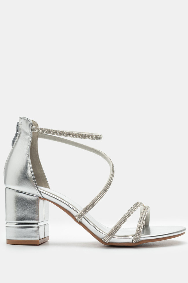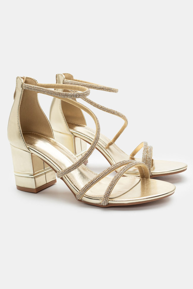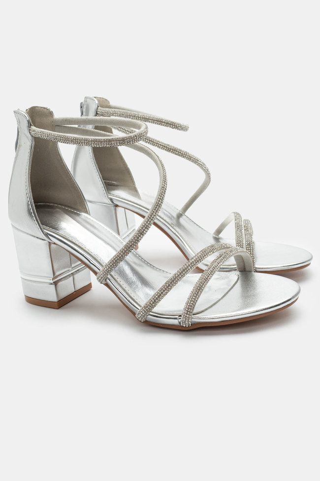 Il matrimonio è sicuramente un\'occasione in cui vuoi indossare un sandalo spettacolare, ma anche ballare tutta la notte senza stancarti. I sandali da matrimonio con tacco largo sono la soluzione! Dettagli scintillanti e strass, in colore argento o oro sono la ciliegina sulla torta in un abbinamento unico.