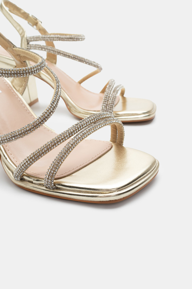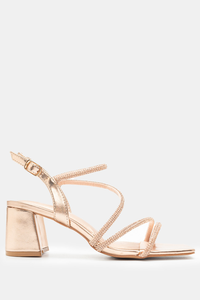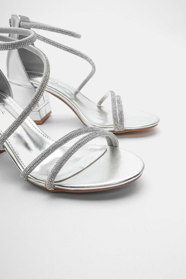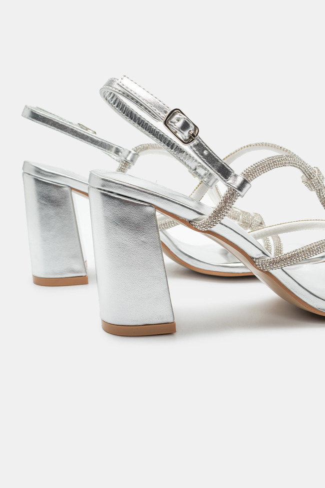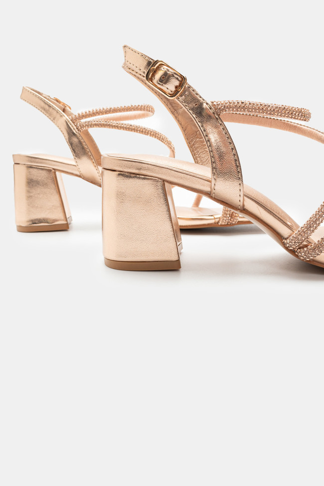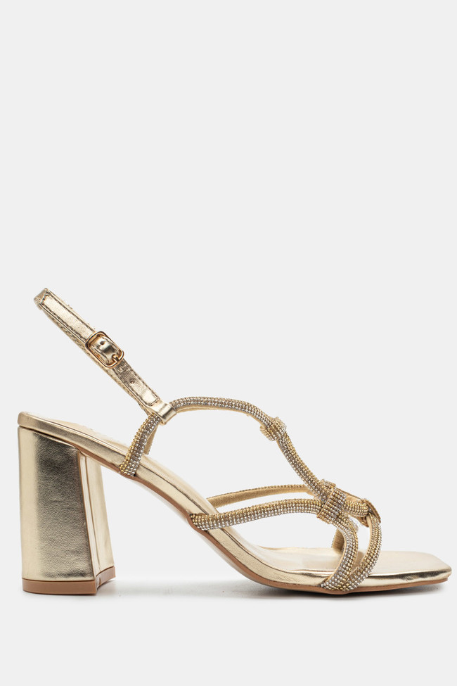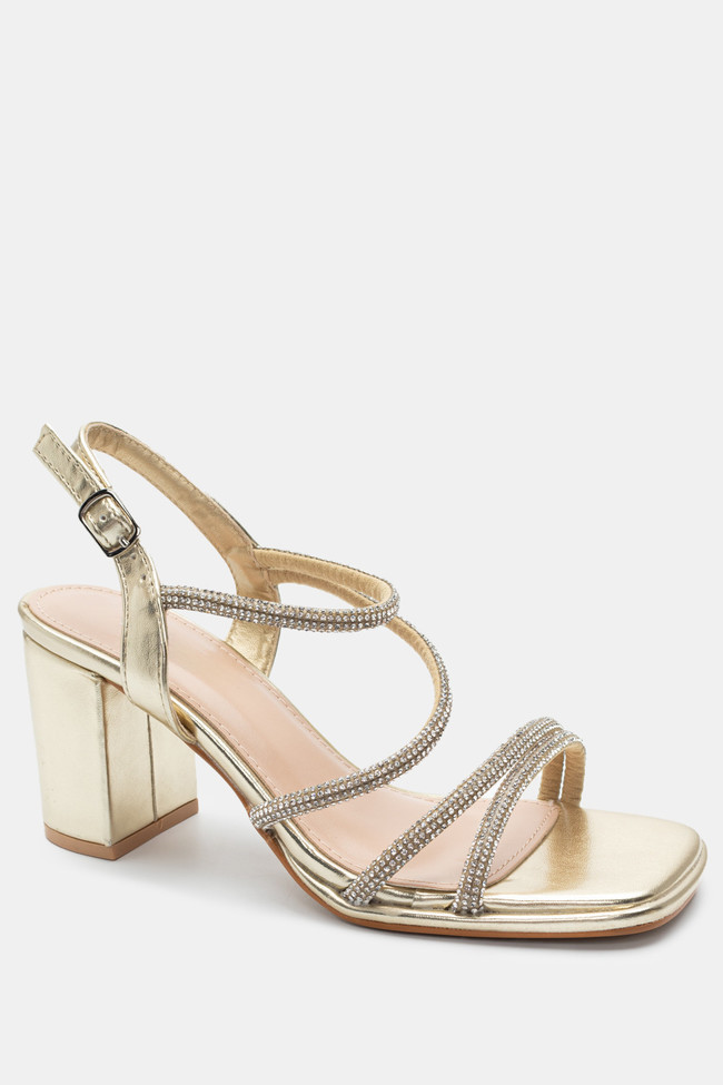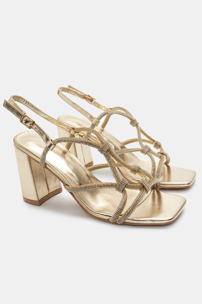 Il matrimonio è sicuramente un\'occasione in cui vuoi indossare un sandalo spettacolare, ma anche ballare tutta la notte senza stancarti. I sandali da matrimonio con tacco largo sono la soluzione! Dettagli scintillanti e strass, in colore argento o oro sono la ciliegina sulla torta in un abbinamento unico.