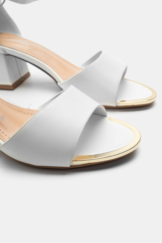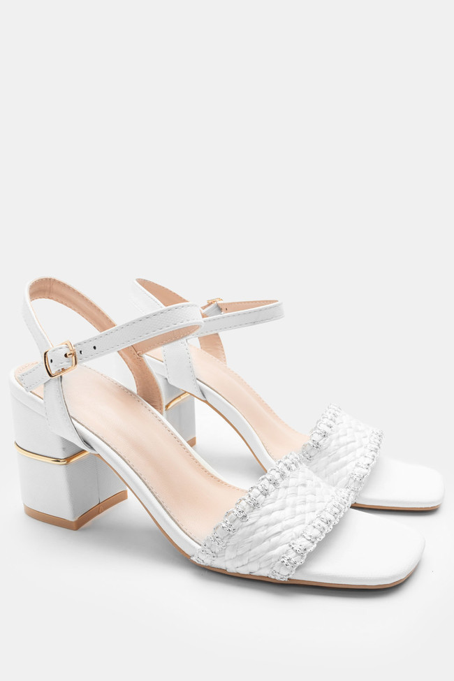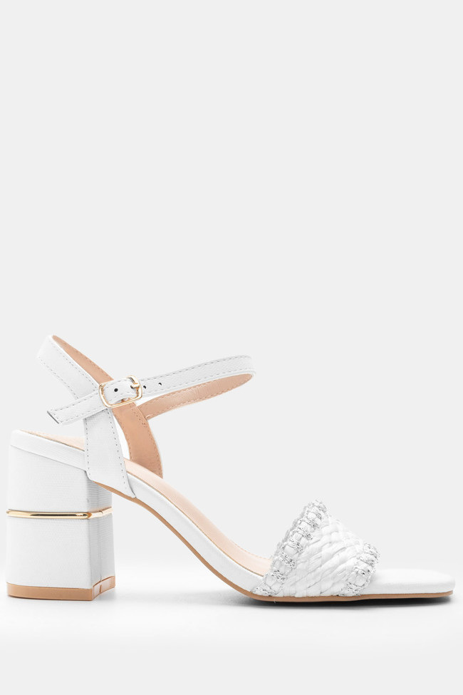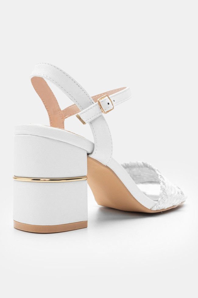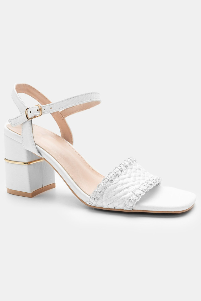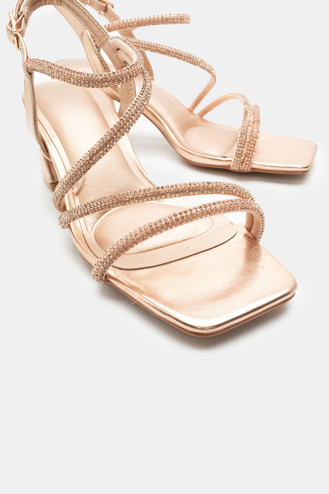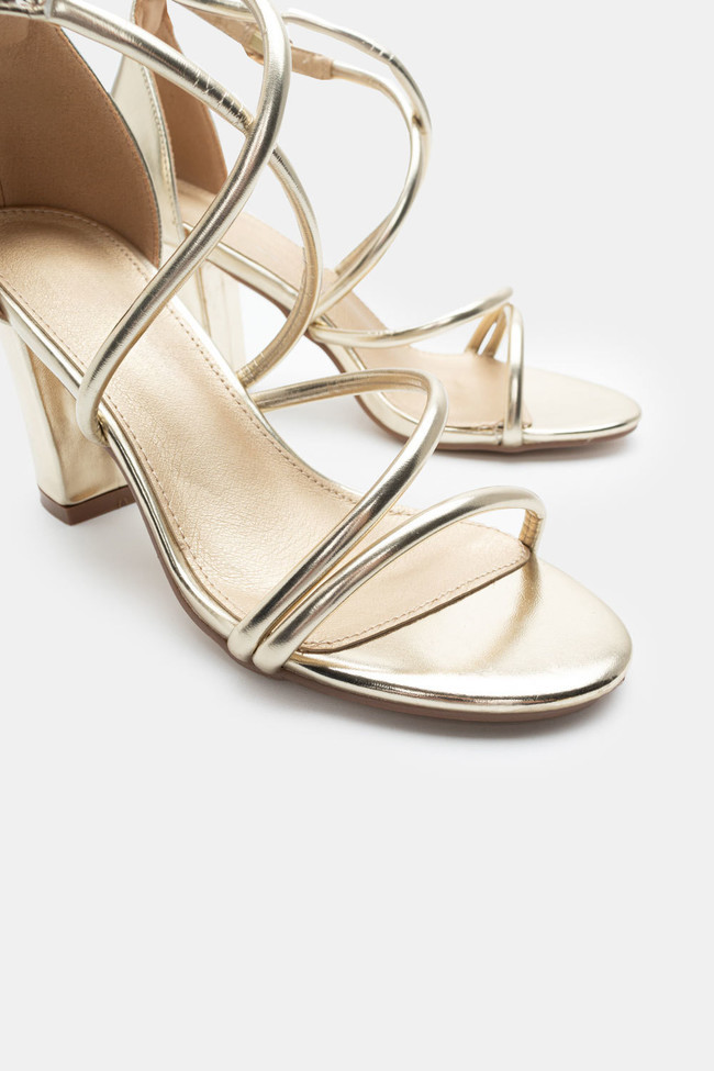 Il matrimonio è sicuramente un\'occasione in cui vuoi indossare un sandalo spettacolare, ma anche ballare tutta la notte senza stancarti. I sandali da matrimonio con tacco largo sono la soluzione! Dettagli scintillanti e strass, in colore argento o oro sono la ciliegina sulla torta in un abbinamento unico.